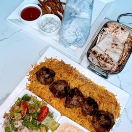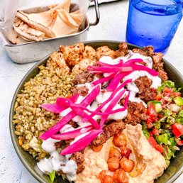 We got takeout last Saturday as we were babysitting for my grandkids who live 2 blocks away. We split one main, a lamb tagine which was terrific and enough for my wife and I. We ordered a side of Tabbouleh- very good and a side of Hummus. Thee was enough Hummus included with the Main that we didn't touch our side. Great Hummus and toasted pita chips. We will definitely return. Terrific place. Great food and very friendly staff.