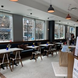 Cafe Fili is such a great spot!! The Mediterranean food is absolutely delicious; coming from a Turk! The lamb sliders were excellent and the happy hour snacks were so good. My husband got the lamb platter, which was also yummy. The on draft seasonal cocktails were so tasty, andI loved the Lebanese beer I had. The service was even better than the food. Our waitress, Brie, I think was her name, was so patient with my two toddlers. She handled all of our requests to make the food more toddler-friendly (no za'atar on the fries or Aleppo chili on the chicken tenders). She brought them lemonade with sparkling water, and always asked what else we needed. She told us she only works Mondays and we were so shocked. She was such a natural and knew the menu so well; we loved her recommendations! Lastly, great ambiance! So light and airy!